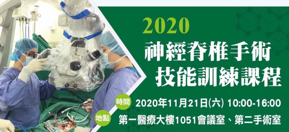 臺北神經醫學中心暨北醫附醫神經外科 將於2020年11月21日上午舉辦神經脊椎手術技能訓練課程, 敬邀臺北神經....